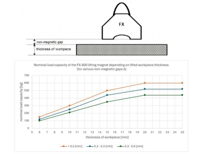 | Дебелина на детайла [mm] | Номинална товароносимост на FX-600 [kg] | ||