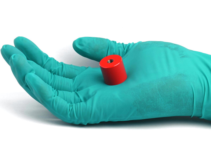 V pouzdře je vnitřní závit pro upevnění háčků nebo šroubů s očkem. Díky pouzdru je magnet jednostranný.