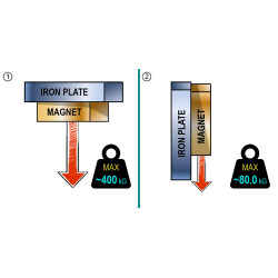 Mezera mezi magnetem a železnou deskou výrazně snižuje sílu potřebnou k oddělení magnetu od desky.