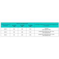 | Arbejdsemnets tykkelse [mm] | Nominel belastningskapacitet for FX-VV600 HOT [kg] | ||