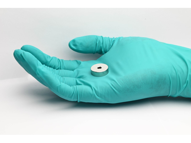 Magnet i hus, diameter 20 mm, med hul til undersænket skruehoved, neodymium