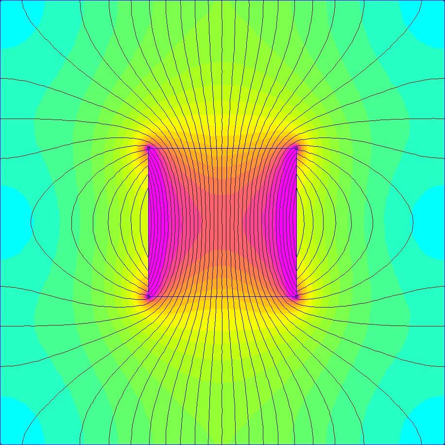 Dies ist klein Quadermagnet. Er hat eine rechteckige Form. Blockmagnet.