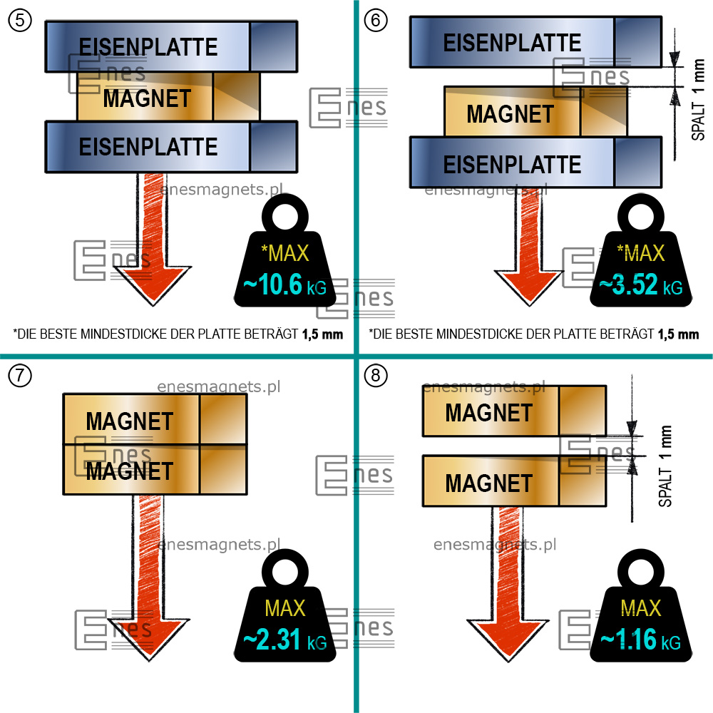 Dies ist ein Neodym-Magnet, der in Höhe magnetisiert ist. Er hat zwei Pole, das heißt er ist doppelseitig. Er ist durch eine Vernickelung gegen Korrosion geschützt. Er wurde mit hervorragenden Maßtoleranzen hergestellt. Die maximale Betriebstemperatur beträgt nicht mehr als 80 Grad Celsius. Neodym-Magnete haften auf Metalloberflächen. Der Magnet kann an Oberflächen aus ferromagnetischen Materialien befestigt werden.