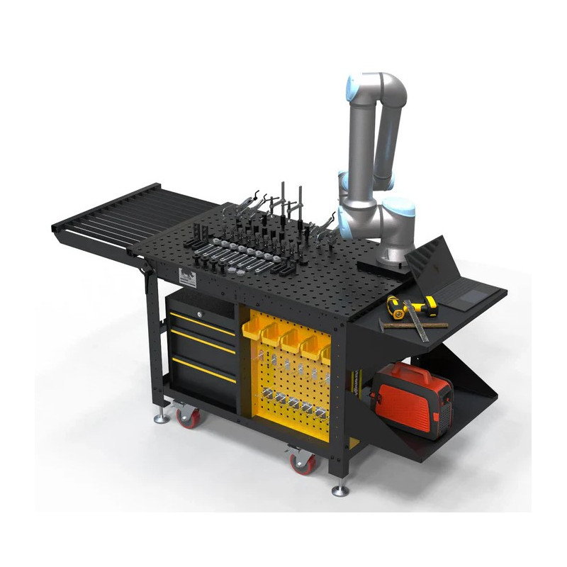 Optionales Zubehör (separat erhältlich) Befestigen Sie die klappbare Plasmaschneidablage oder die Anhängeplatte an Ihrer Rhino Cart Mobile Fixturing Station, um an einem praktischen Arbeitsplatz zu schneiden, zu spannen, zu befestigen und zu schweißen. |
