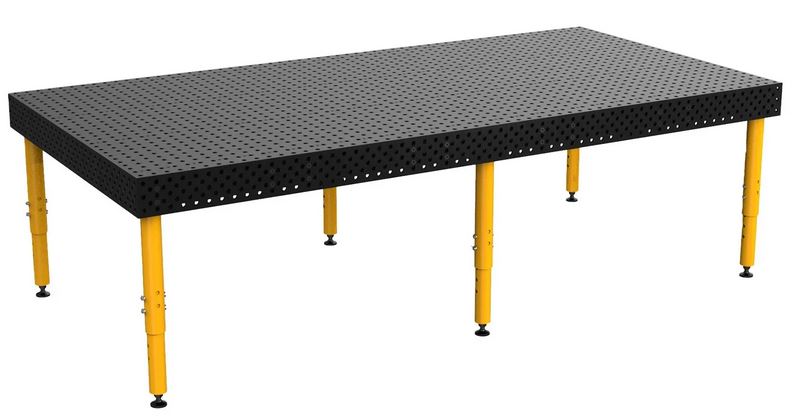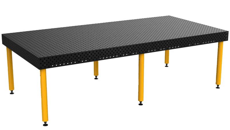 Alle BuildPro-Schweißtische verfügen über präzisionsgefertigte, selbstpositionierende Stahlplatten und umkehrbare Oberplatten. Dadurch kann jede Tischplatte entfernt und um 180 Grad gedreht werden, um eine neue Arbeitsfläche freizulegen, wenn die Oberseite beschädigt oder abgenutzt ist.