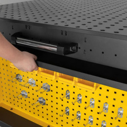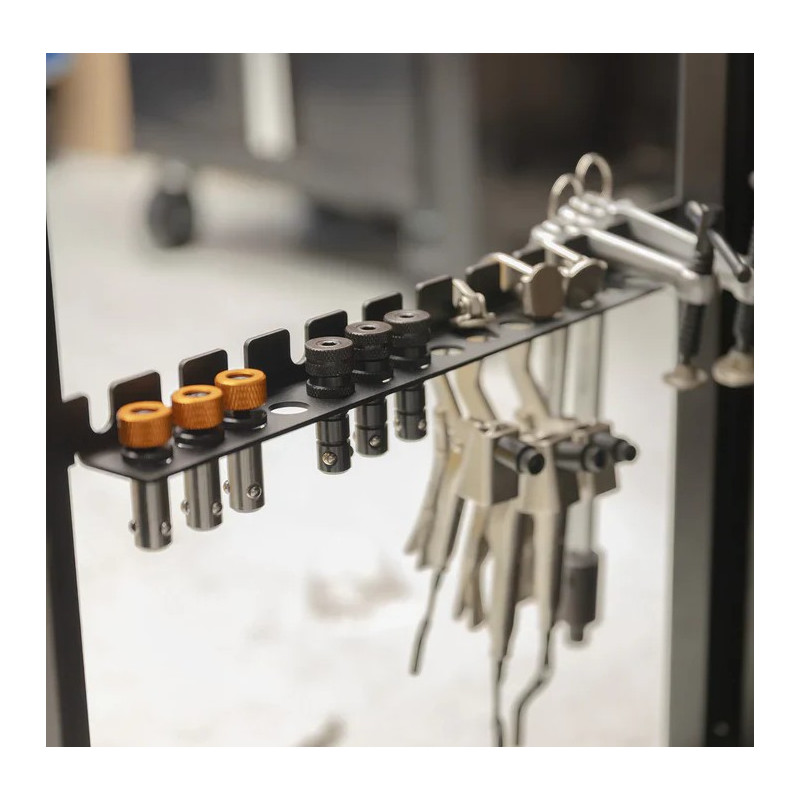 Storage and organisation Shelves, racks and a perforated panel allow you to store, organise and keep your clamps and accessories close at hand. |