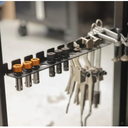 Storage and organisation Shelves, racks and a perforated panel allow you to store, organise and keep your clamps and accessories close at hand. |