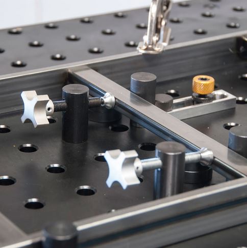 CNC Hole Pattern Accurately position parts in CNC precision bored 16 mm diameter holes in 50x50 mm spacing pattern. |