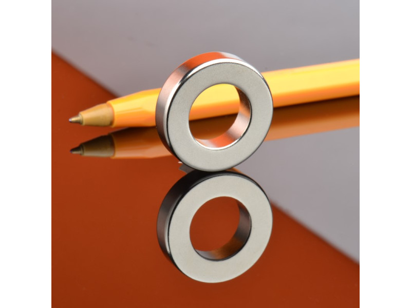 Se trata de un imán redondo con agujero, un imán anular, imán con agujero pasante, imán de disco con agujero, imán cilíndrico con agujero, toroide de sección rectangular. Es un imán de neodimio, magnetizado a lo largo de 6 mm de espesor. Tiene dos polos magnéticos, lo que significa que es de doble cara. Está protegido contra la corrosión mediante niquelado. Se ha fabricado con excelentes tolerancias dimensionales. La temperatura máxima de funcionamiento no supera los 80 grados Celsius. Los imanes de neodimio se adhieren a superficies metálicas. Puede fijar el imán a superficies de materiales ferromagnéticos.