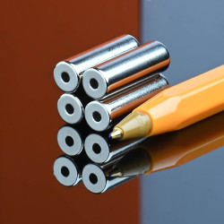 Se trata de un imán redondo alargado con orificio, un imán de anillo, imán con orificio pasante, imán de disco con orificio, imán cilíndrico con orificio, toroide de sección rectangular.