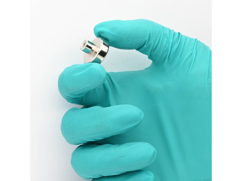El imán está pegado en una carcasa de acero, por lo que está más protegido contra impactos. En la carcasa hay una rosca interior para fijar ganchos o cáncamos. Debido a la carcasa, el imán es de una sola cara.