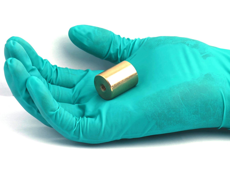 Imán de latón, diámetro 20 mm, rosca interior M6, altura 25 mm, neodimio