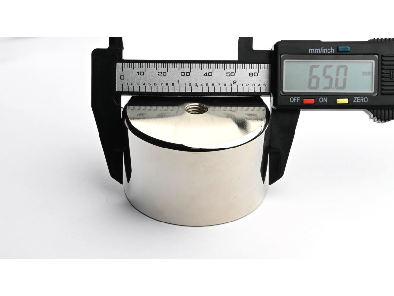 Imán, diámetro 65 mm, rosca interior M10, altura 40 mm, neodimio
