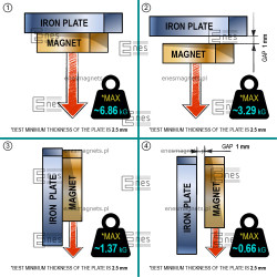 Siin esitatud magnetite parameetrite väärtused on ühe konkreetse magneti mõõtmiste tulemus ja neid kasutatakse veebipoes saadaval olevate magnetite võrdlemiseks. Soovitame katsetada magnetit ise eeldatavates töötingimustes.