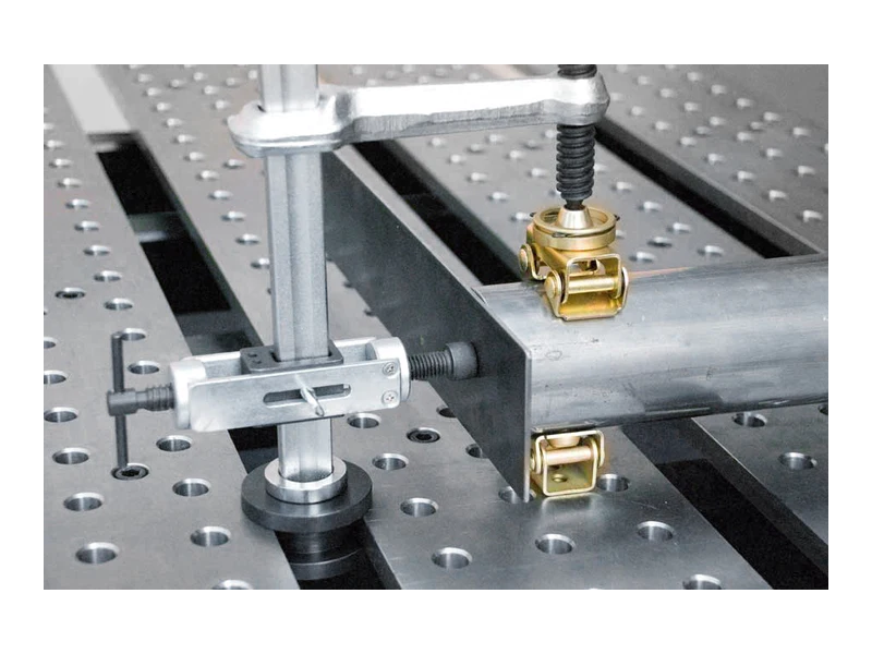 Sivutukia voidaan käyttää kiskossa hitsauspuristimissa. Puristimen iskua ja ulottuvuutta voidaan muuttaa vaihtamalla pidempi tai lyhyempi aluslevy.