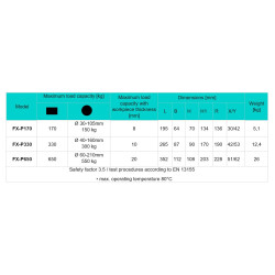 | FX-P170 | 30-105 [mm] | 2000 [mm] | 150 [kg] |