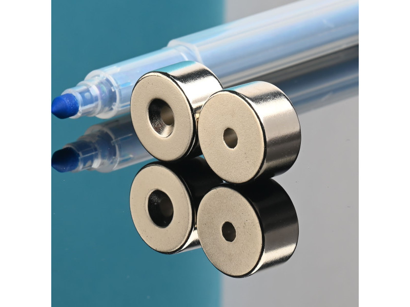 Il s'agit d'un aimant en forme de disque avec un trou pour une tête de vis à tête fraisée.