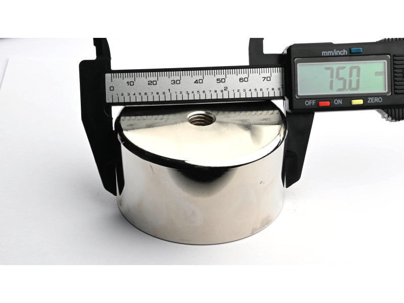 Magnete, diametro 75 mm, filettatura interna M12, altezza 40 mm, neodimio