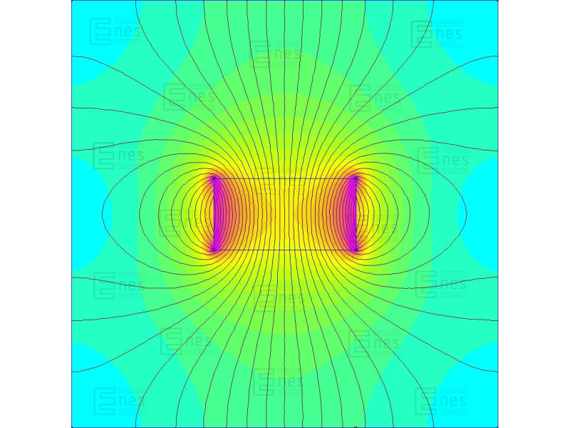 Magnetas turi du magnetinius polius, todėl yra dvipusis. Šiaurinis polius yra ant apvalaus cilindro pagrindo, o pietinis - priešingame paviršiuje. Magnetas buvo įmagnetintas išilgai ašies, statmenos cilindro pagrindui.