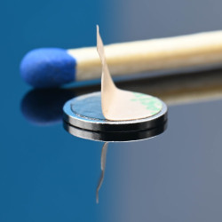 Tai neodimio magnetas, įmagnetintas išilgai aukščio. Jis turi puikų lipnų sluoksnį 3M arba lipnias putas 3M. Jį labai lengva priklijuoti nuėmus apsauginę juostelę. Šį magnetą labai lengva priklijuoti prie daugelio paviršių. Jis apsaugotas nuo korozijos nikeliu. Jis pagamintas laikantis puikių matmenų tolerancijų. Didžiausia darbinė temperatūra yra ne aukštesnė kaip 80 laipsnių Celsijaus. Neodimio magnetai prilimpa prie metalinio paviršiaus. Nepaisant mažų matmenų, šis magnetas yra stiprus.