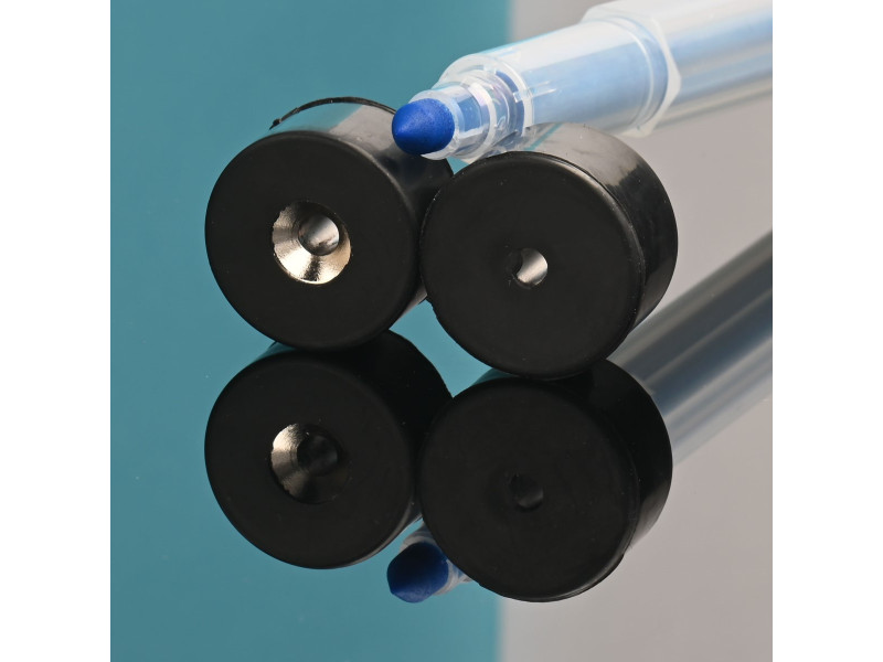 Tas ir gumijots, ar gumijas pārklājumu pārklāts magnēts gumijas apvalkā. Gumija lielā mērā novērš magnēta lūšanu triecienu un triecienu laikā. Magnētam ir nofrēzēts caurums montāžai, izmantojot skrūvi vai skrūvi ar smaili.