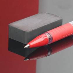 Het is een ferrietmagneet, gemagnetiseerd in de hoogte. Hij heeft twee polen en is dus dubbelzijdig. Ferrietmagneten zijn goed bestand tegen corrosie en hebben geen extra bescherming nodig. De maximale bedrijfstemperatuur is maximaal 250 graden Celsius. Ferrietmagneten hechten aan metalen oppervlakken (ferromagnetische materialen).