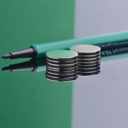 Este íman fino é circular, cilíndrico, com a forma de um cilindro ou de um disco.
