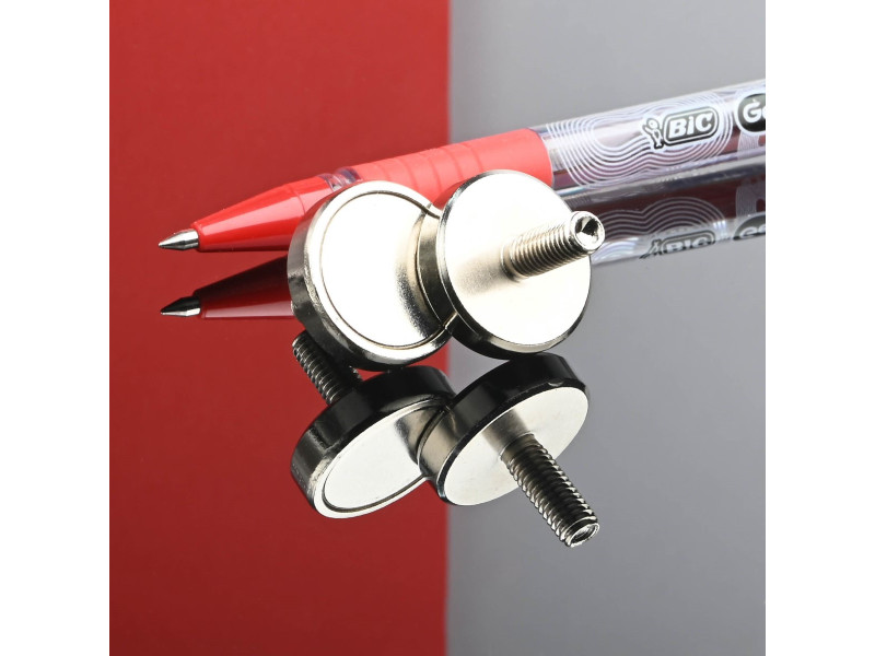 Držiace magnety sú jednoduché magnetické obvody zložené z magnetu a oceľového puzdra. Magnet je vlepený do oceľového puzdra, takže je viac chránený proti nárazom. V puzdre je vonkajší závit na upevnenie do montážnych otvorov.