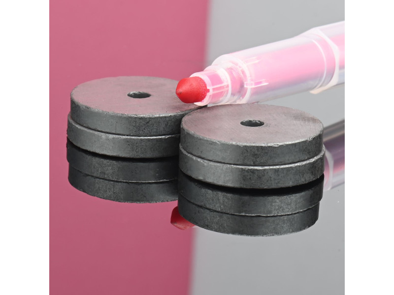 Je to feritový magnet, zmagnetizovaný po výške. Má dva póly, čo znamená, že je obojstranný. Feritové magnety sú dobre odolné voči korózii a nevyžadujú dodatočnú ochranu. Maximálna prevádzková teplota nie je vyššia ako 250 stupňov Celzia.