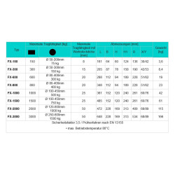 ♦ tjocklek och form på de arbetsstycken som ska lyftas (för varje lyftare anges förhållandet mellan lyftkapacitet och arbetsstyckets tjocklek). För cylindriska massiva arbetsstycken (cylindrar, stänger) är lyftkapaciteten ca 50% mindre.