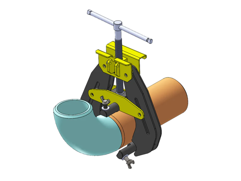 Svetsklämma avsedd för rör, två breda tassar i rostfritt stål ger ett jämnt och säkert grepp om arbetsstycket. Spännbulten glider lätt upp och ner för snabb isättning och borttagning.