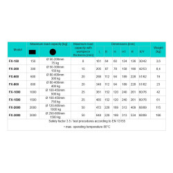 | İş parçası kalınlığı [mm] | FX-3000'in nominal yük kapasitesi [kg] | ||