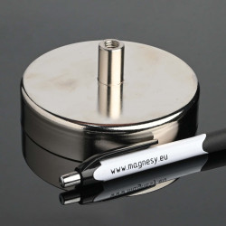 Утримуючі магніти - це прості магнітні ланцюги, що складаються з магніту і сталевого корпусу. Магніт вклеєний в сталевий корпус, тому він більш захищений від ударів. У корпусі є гвинтове гніздо з внутрішнім різьбленням для кріплення гачків або рим-болтів. Завдяки корпусу магніт є одностороннім.Феритові магніти добре стійкі до корозії і не потребують додаткового захисту. Корпус захищений нікелевим покриттям. Максимальна робоча температура не більше 110 градусів за Цельсієм. Феритові магніти прилипають до металевої поверхні (феромагнітних матеріалів).